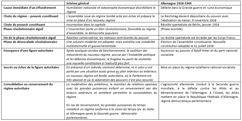 Il faut d'abord rappeler que les cas Révolution française-Premier Empire, Révolution russe-Empire soviétique, Révolution allemande-Troisième Reich sont des cas de révolution initiale, la première intervenue respectivement en France, Russie et Allemagne. Ils apparaissent donc d'un autre ordre pour ce qui est de la fièvre révolutionnaire, de la brutalité des conséquences humaines et du débordement hors des frontières.